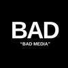 A young man working with a professional camera on a tripod, wearing a black hoodie with 'BAD MEDIA' written on the back, in a dark setting likely on a film or video shoot.